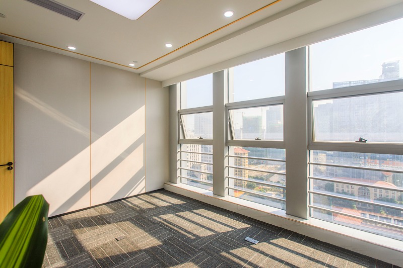 该项目的优势是所有靠玻璃幕墙的房间均有较多窗户可以开启,通风效果很好。